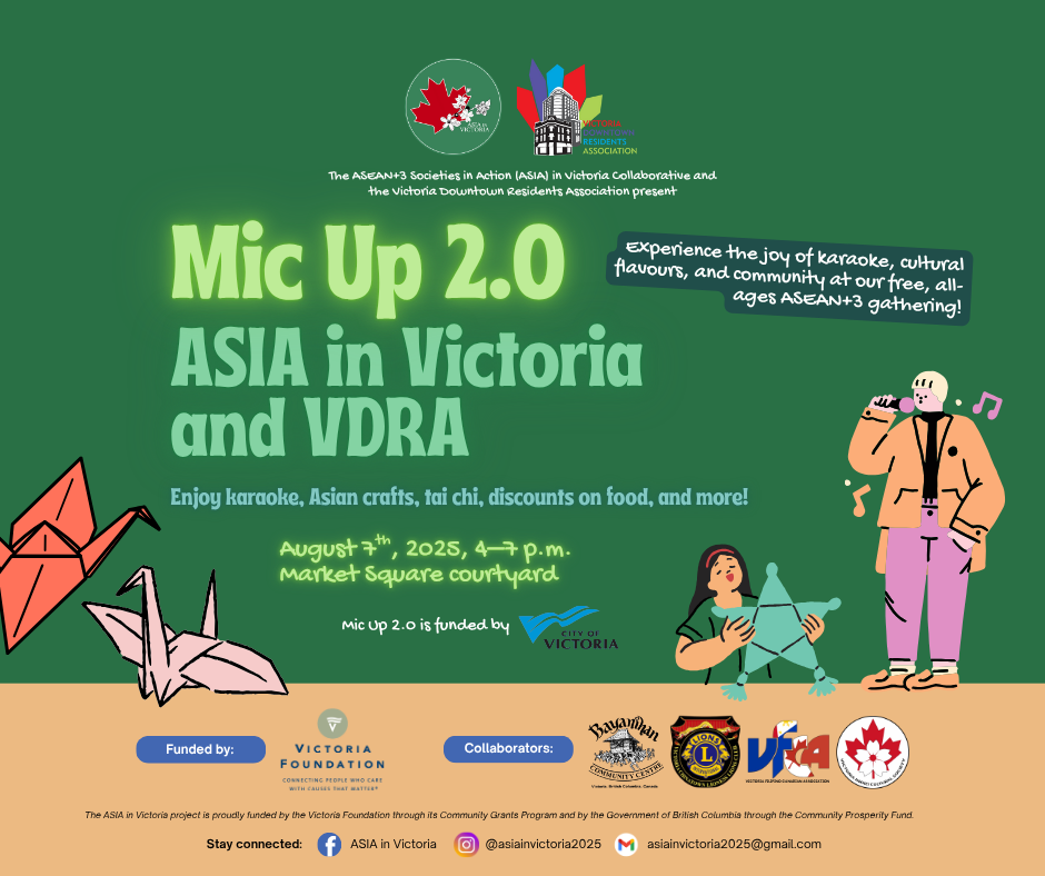 Asia in Victoria and the Victoria Downtown Resident Association will be putting on an exciting cultural event. Enjoy Karaoke, Tai Chi and more in the lower courtyard.